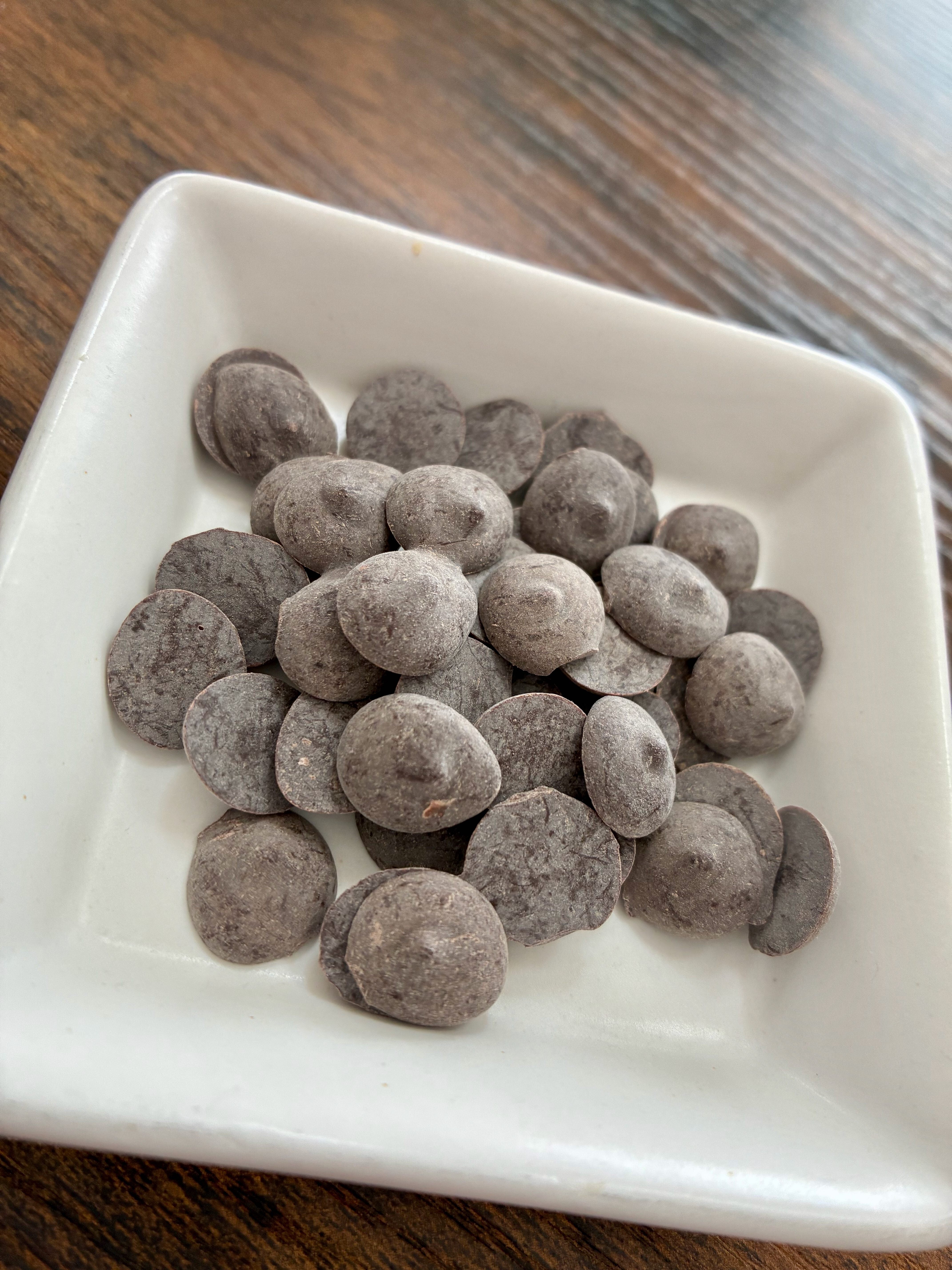 製法は板チョコと同じですが、小さなドロップ状の形になっており、溶かしやすくお菓子作りなどにも適しています。